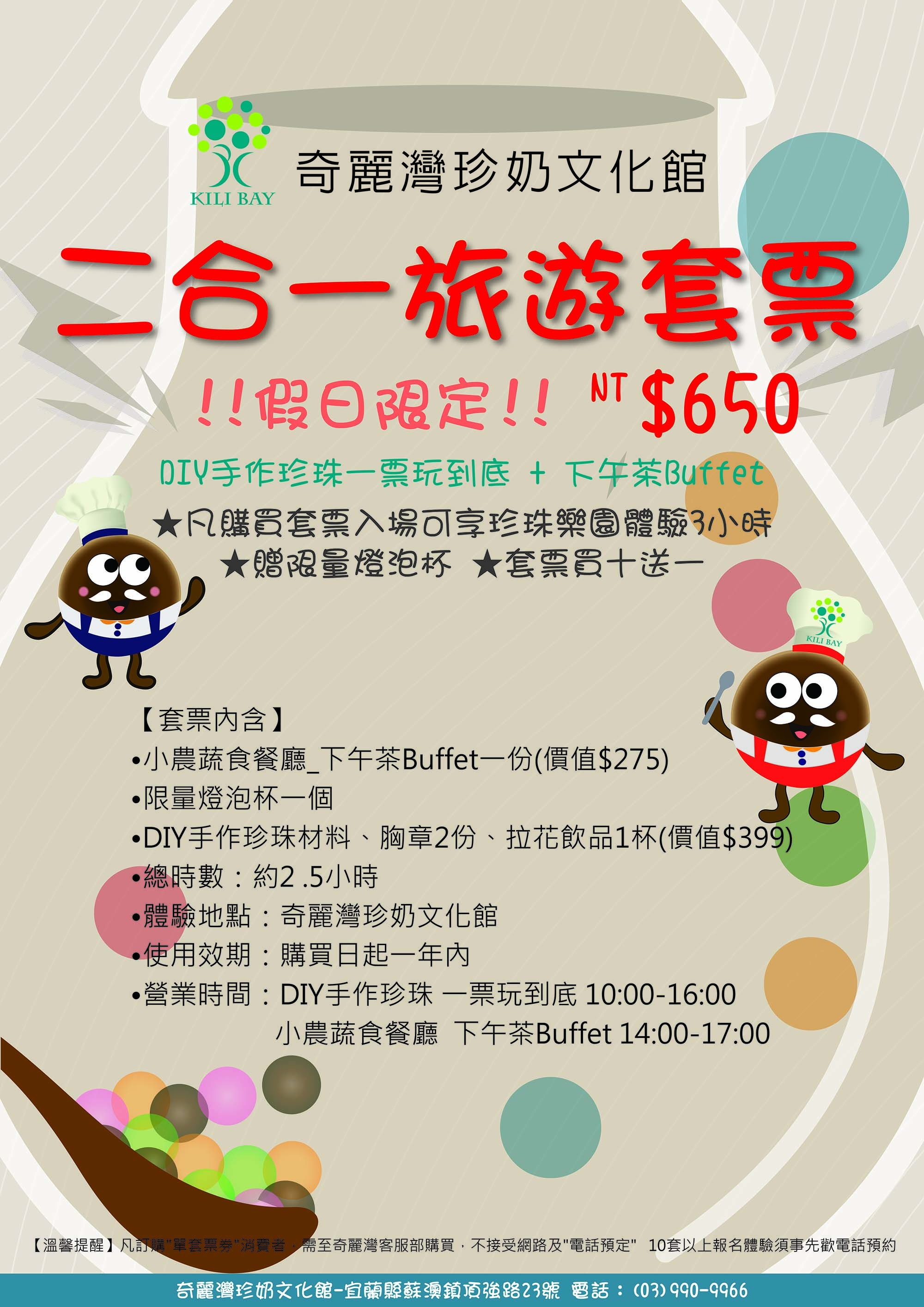 •DIY手作珍珠材料、胸章2份、拉花飲品1杯(價值$399)