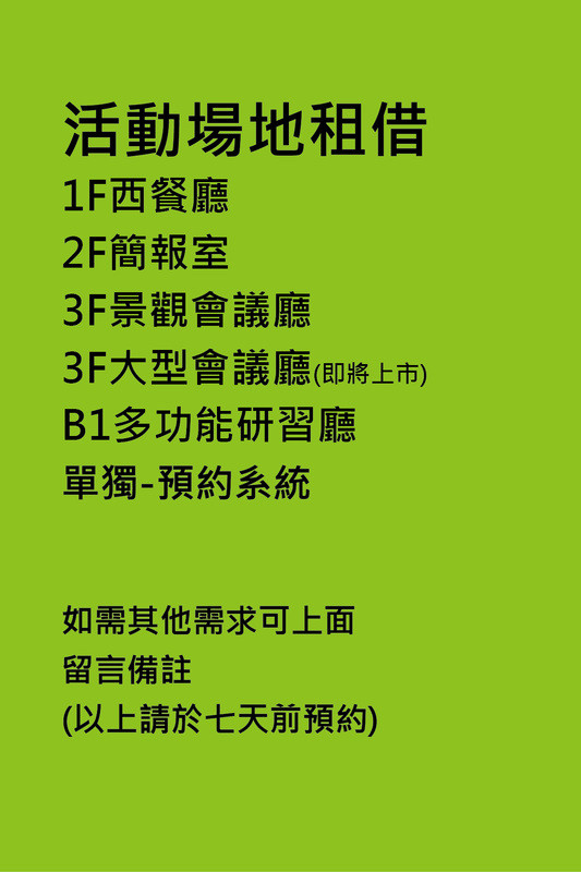 *用餐人數達30位以上限3天前預約; 或撥打客服專線(03-990-9966)由專人為您服務,謝謝