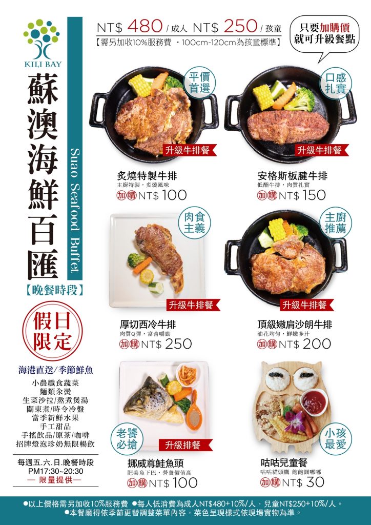 【需另加收10%服務費 ‧100cm-120cm為孩童標準】